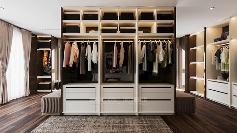 Thiết kế trang trí nội thất phòng thay đồ phòng thay quần áo đẹp cao cấp cho không gian nội thất biệt thự hải phòng